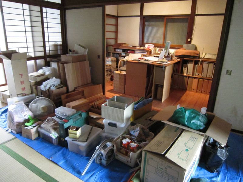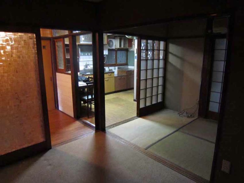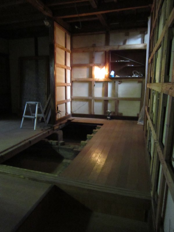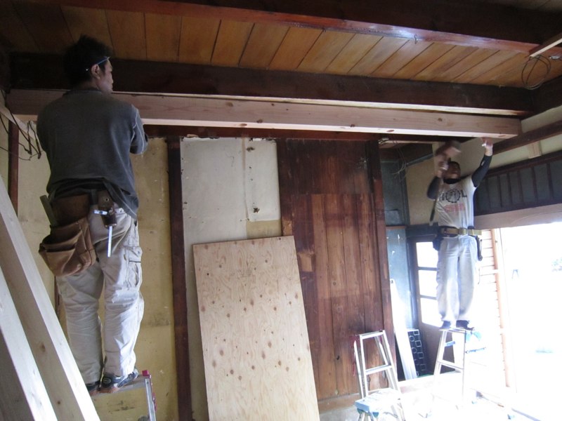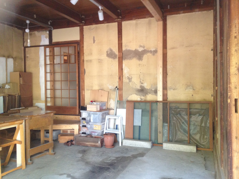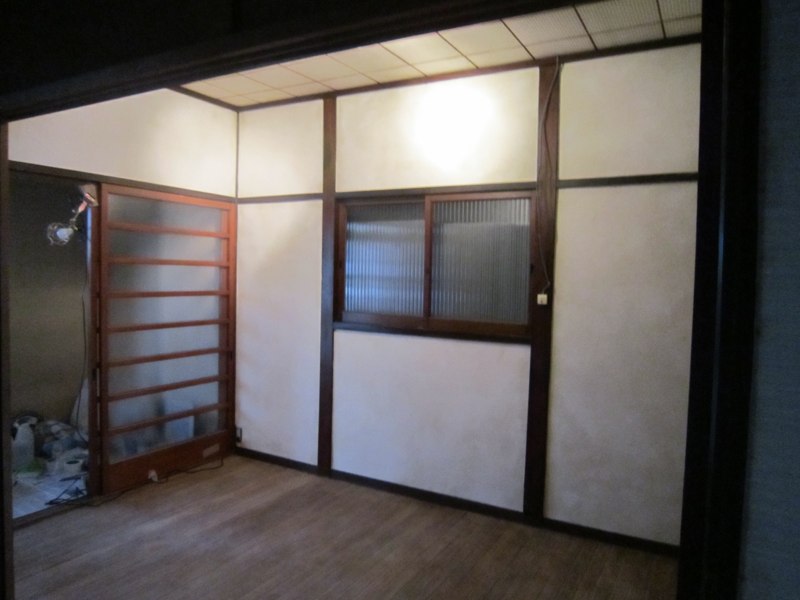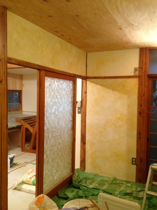 ![プリント合板を剥がすと、土壁や昔の板貼りが顔を出しました]()