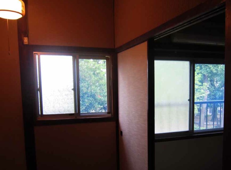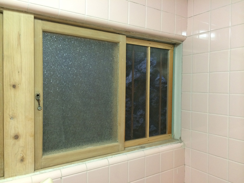 ![以前から片窓分の網戸はあるのですが、両方どちらからでも換気できるように、もともとの網戸とガラス戸の隙間にもう一つつくる作戦。]()