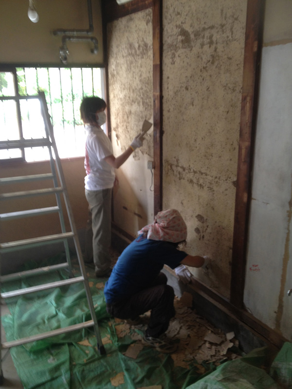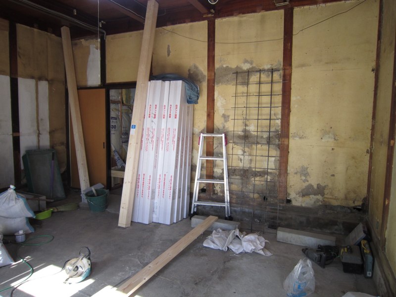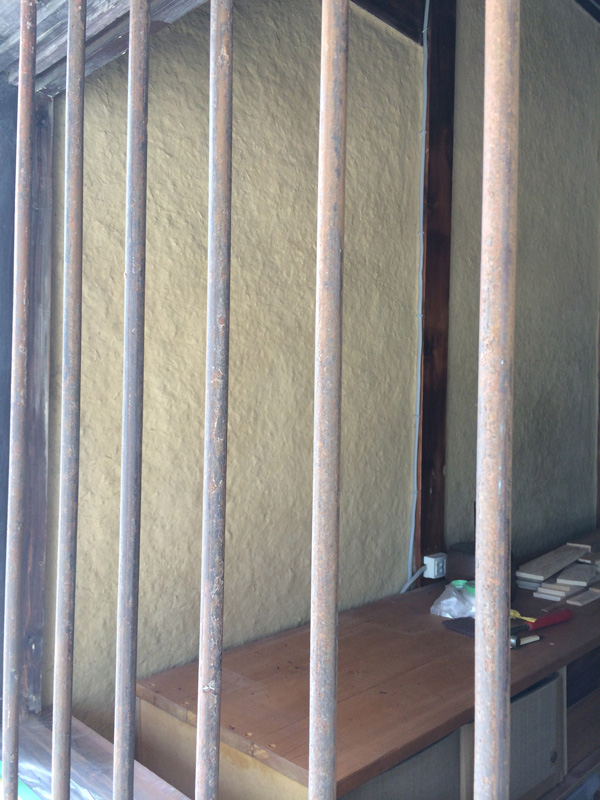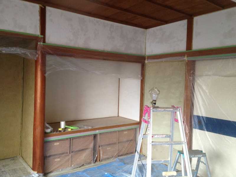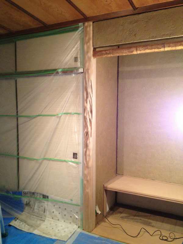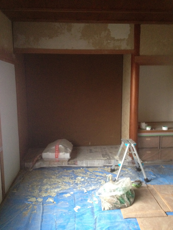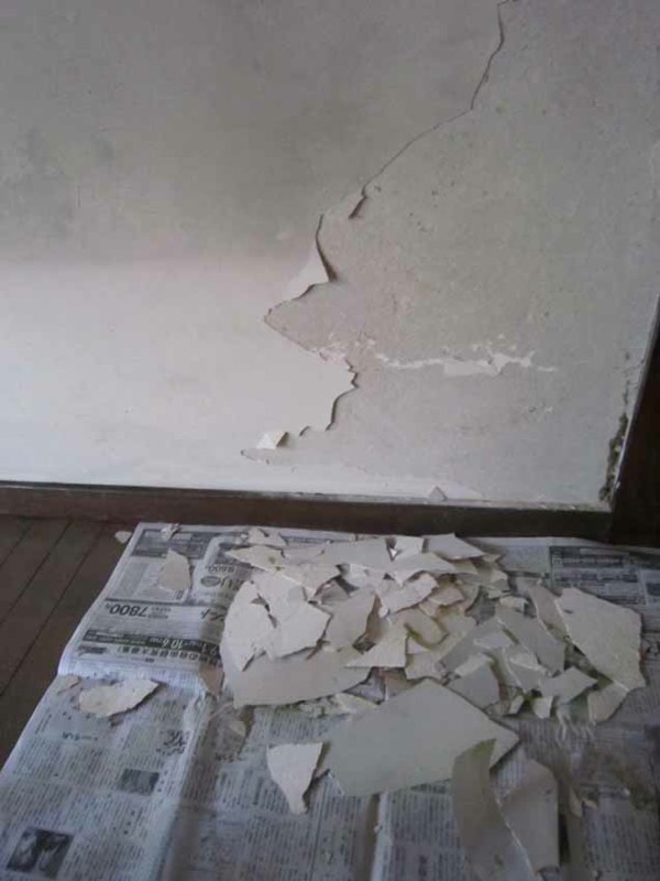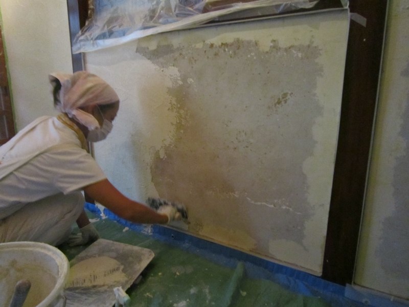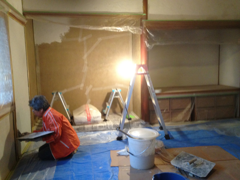壁の漆喰塗りが浮いてたので剥がしてます]()