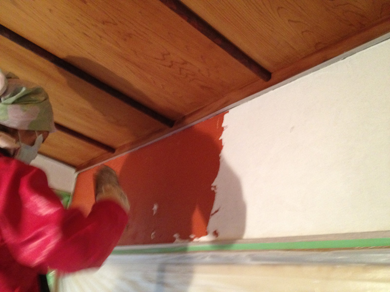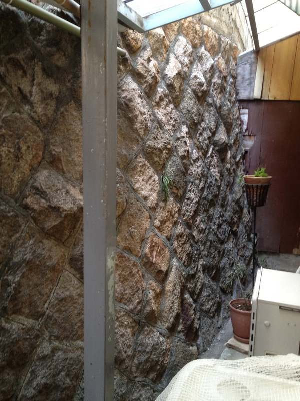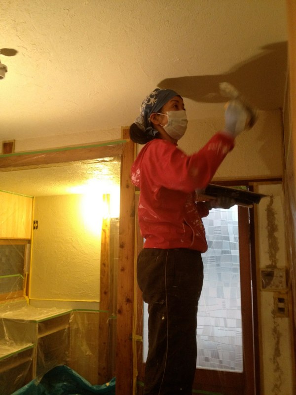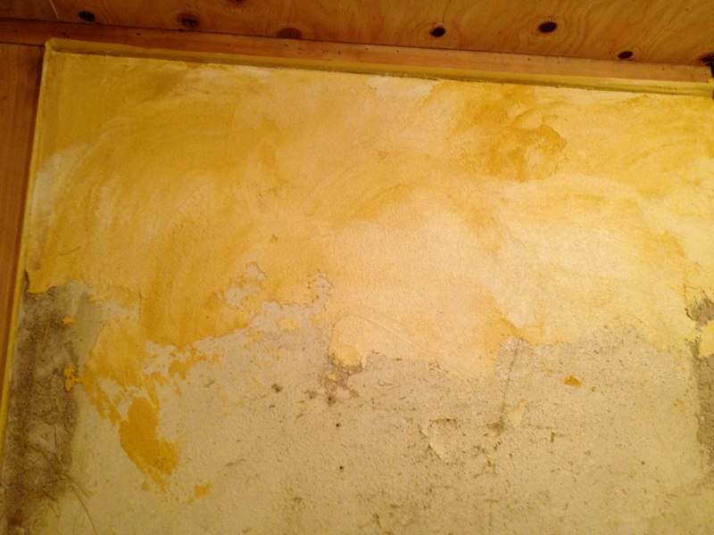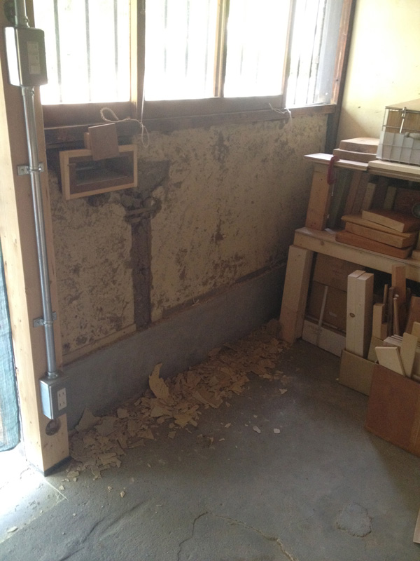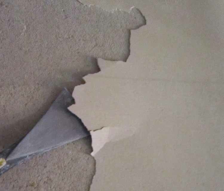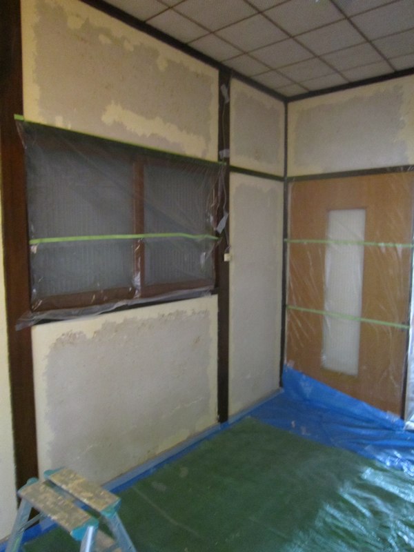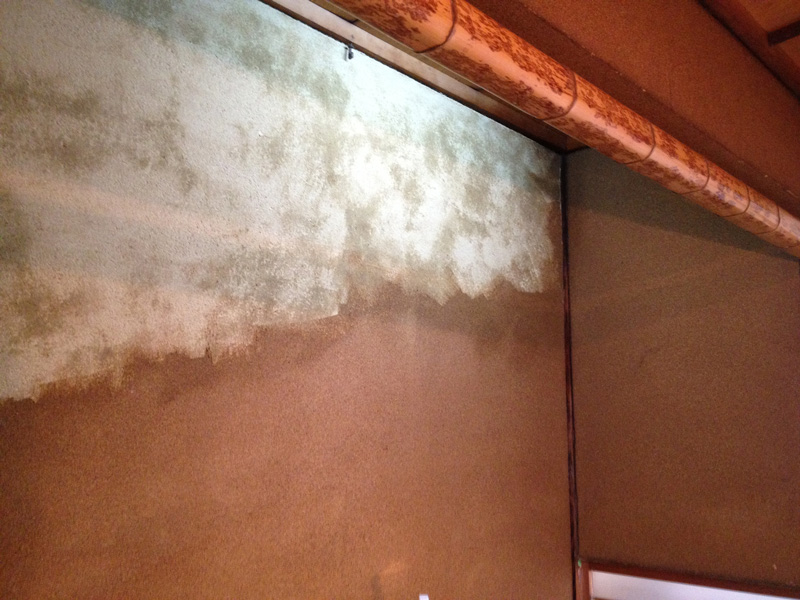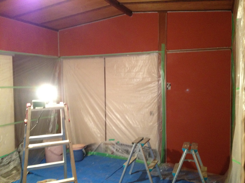 壁の漆喰塗りが浮いてたので剥がしてます]()