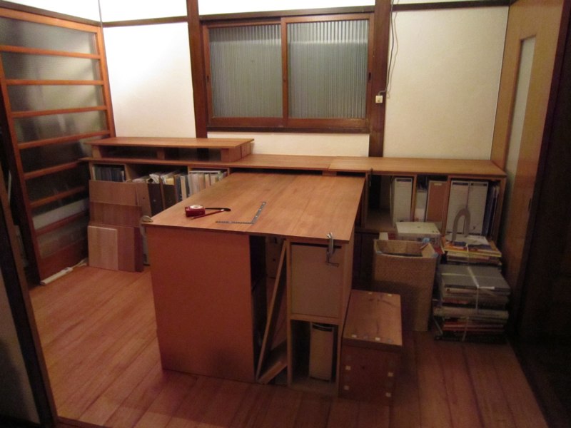 次は大机が必要なのですが、ダンボール箱の脚でしばらく代用中…