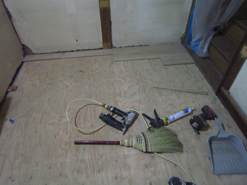大工さんの仕事が速くて、フローリング張りどんどん進み…