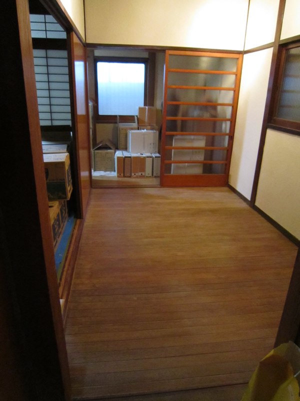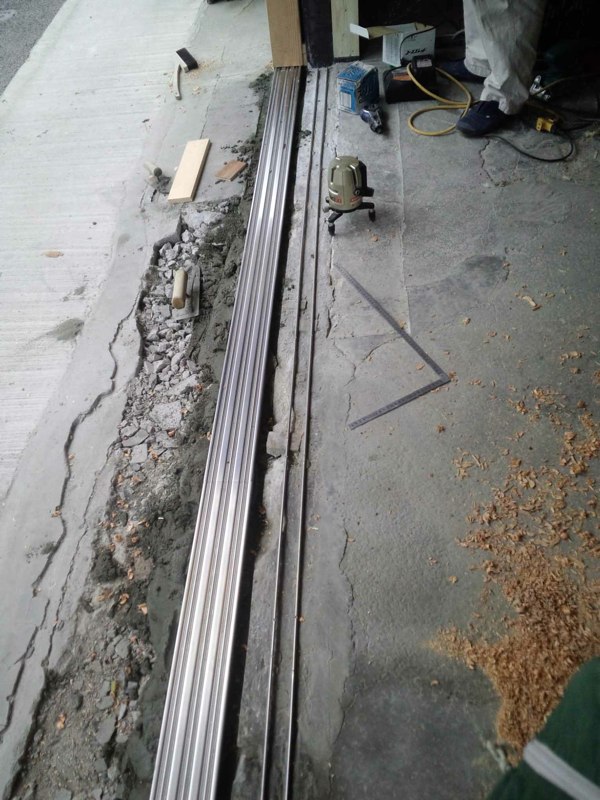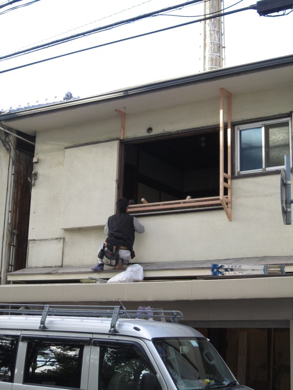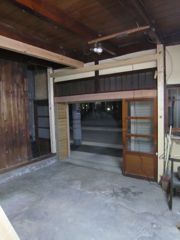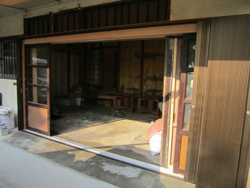一階正面の古いシャッターと古い建具レールを取り外し