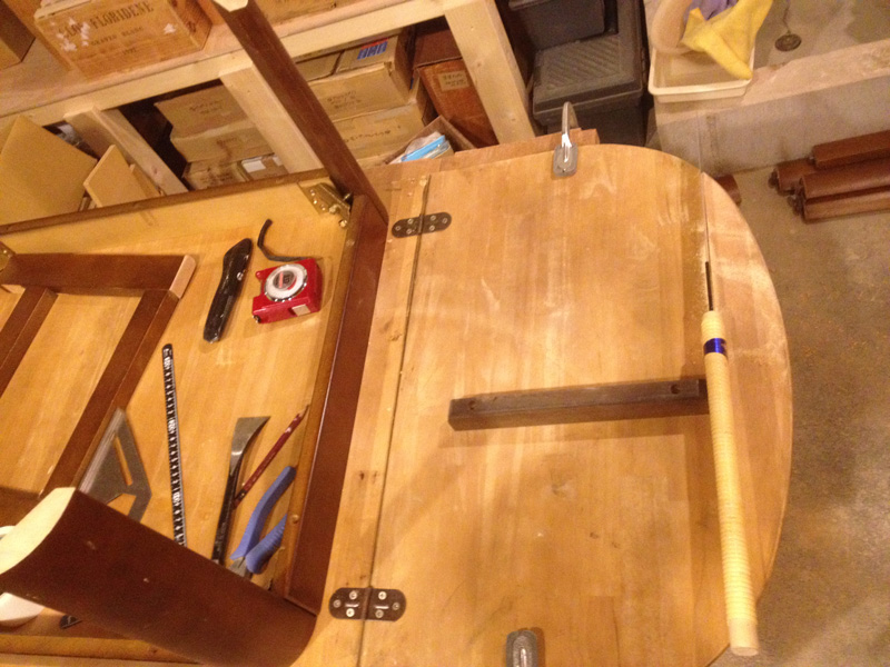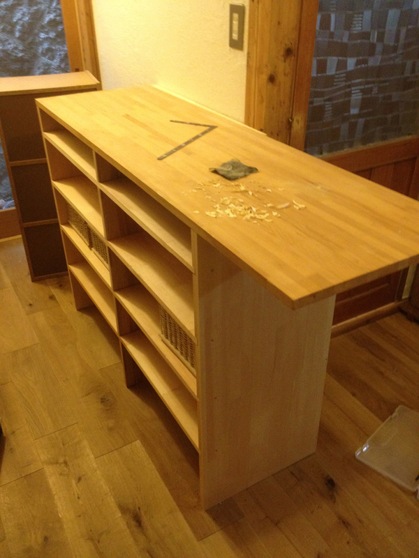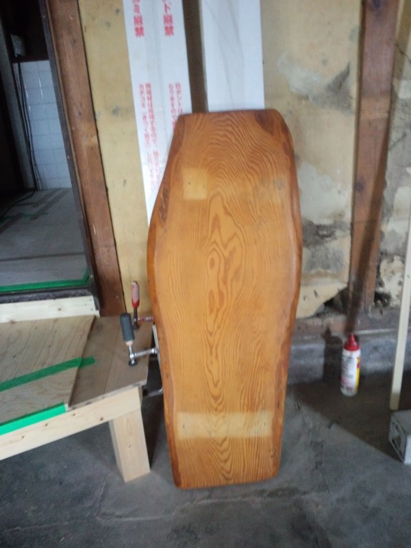 天板は、2階奥についてた昔ながらの厚い棚板を2枚合わせて。