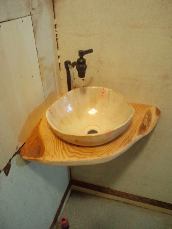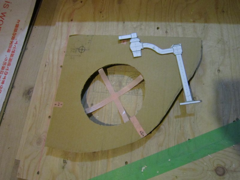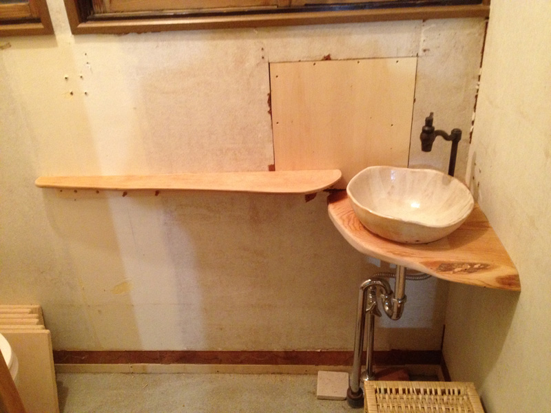 ![手洗い棚のサイズ・形は原寸型紙をつくってお願いしました]()