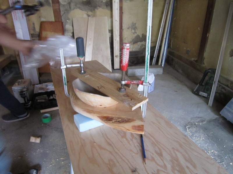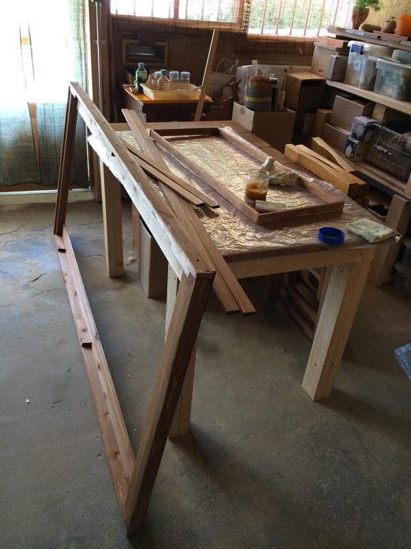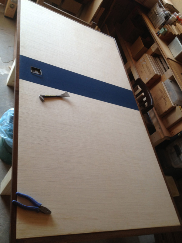 ![木材は軽いファルカタ、ポアステインで着色、あとでオイルも塗ります。]()