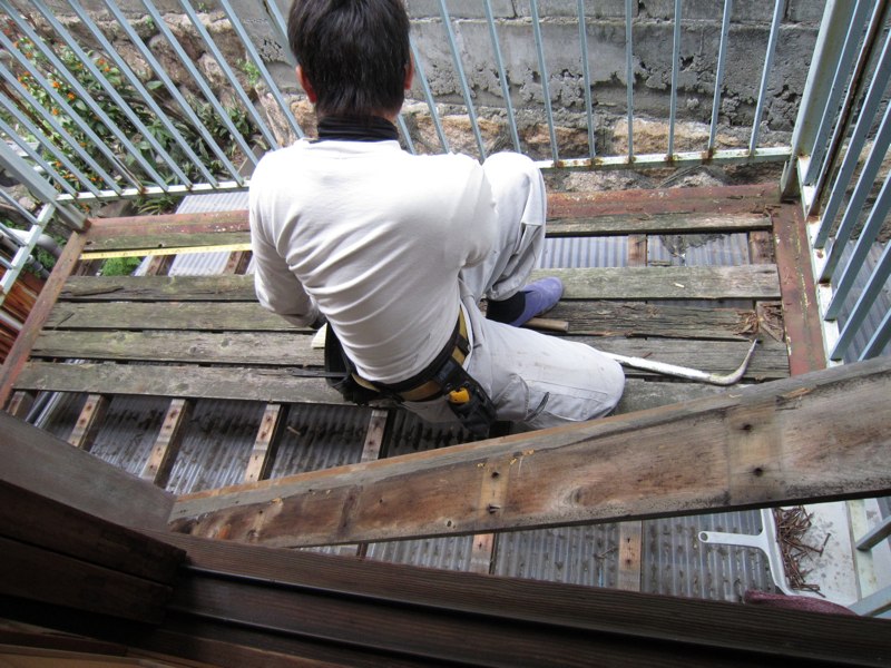 ![補強OK。木の色をまわりに合わせて塗るのは後日、私のしごと]()