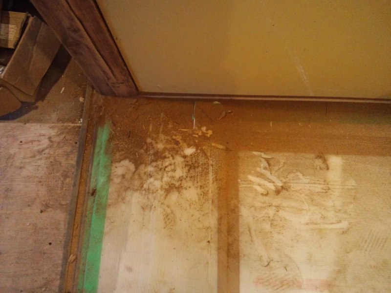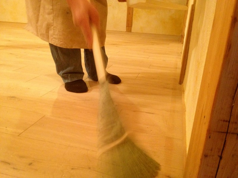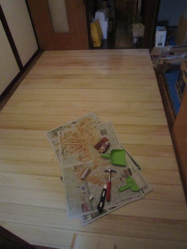 壁が塗れたので床の養生をとって掃除。やっとフローリングが見える