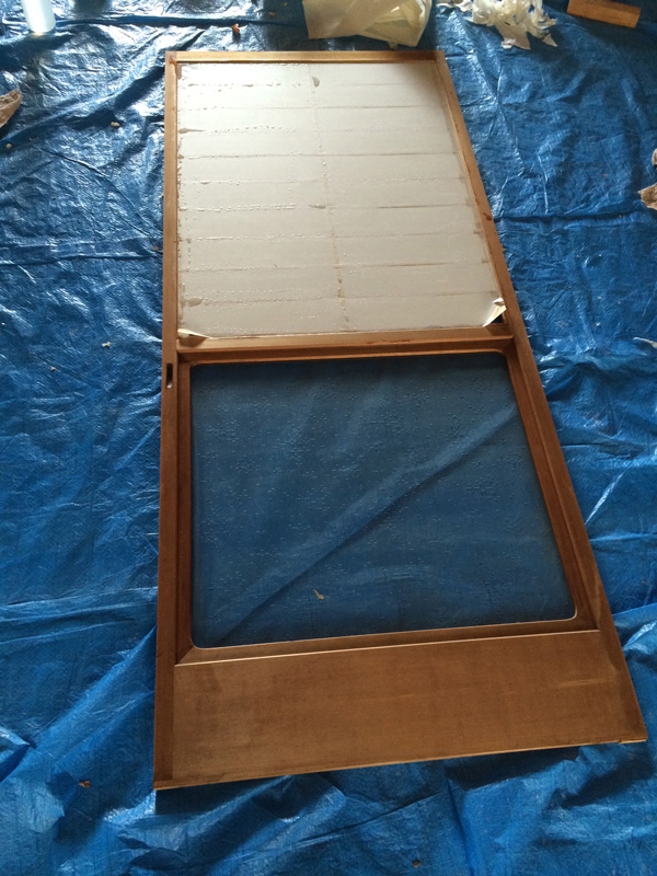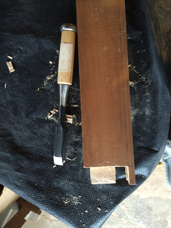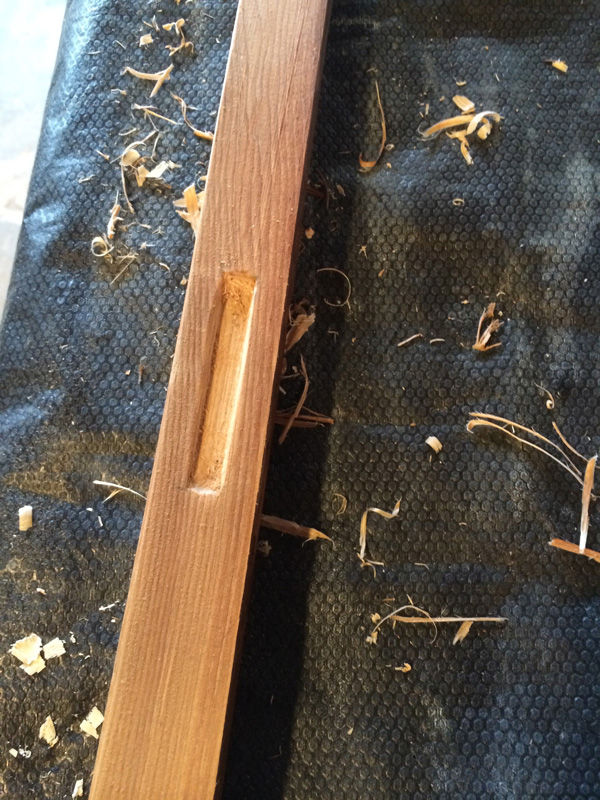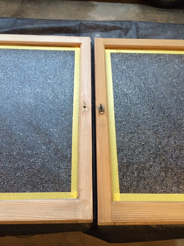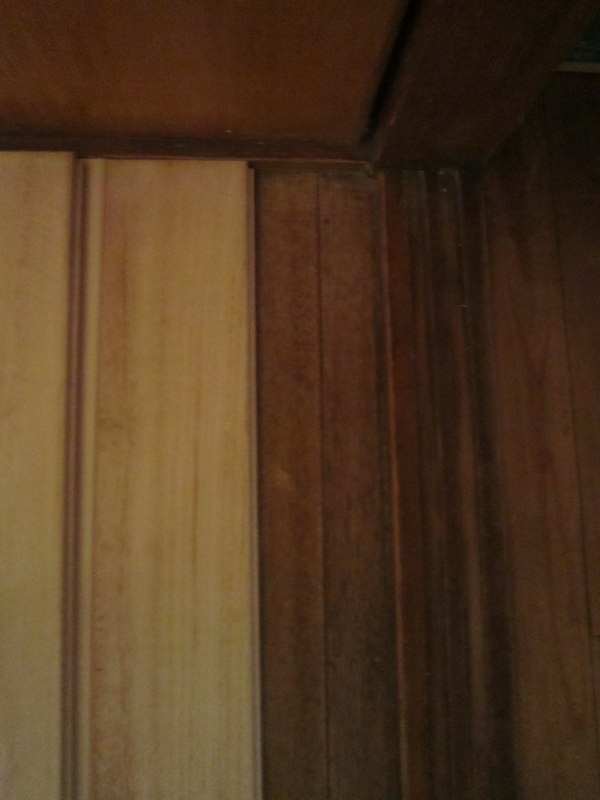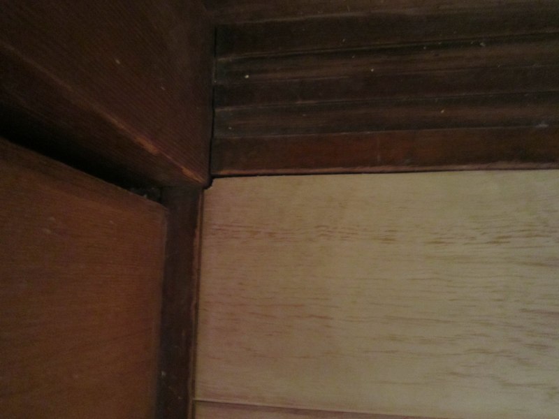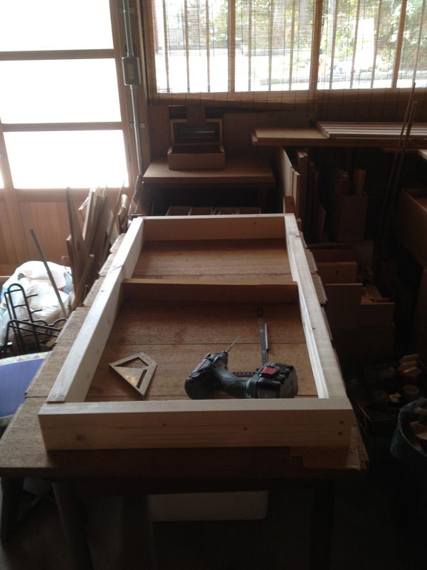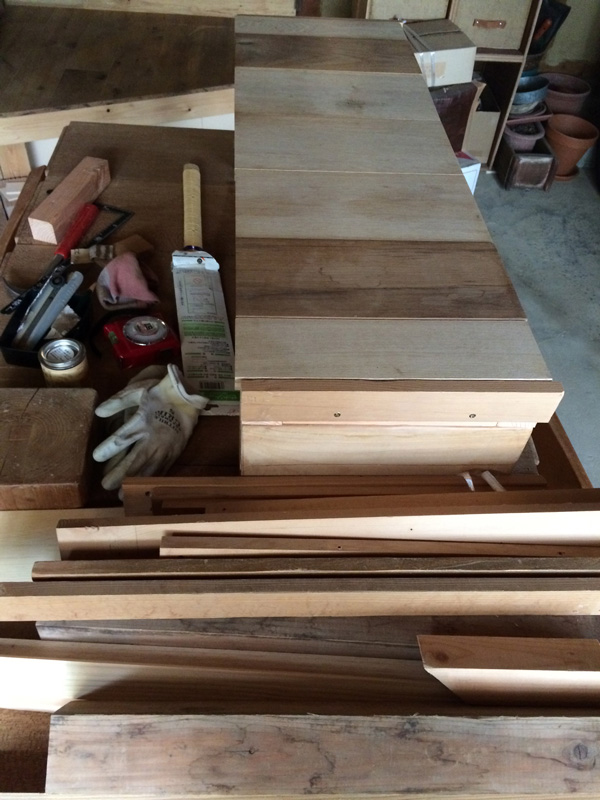 引戸の溝の加工はできないので足し算方式でつくります。まわりの木材と馴染むように塗装もして。