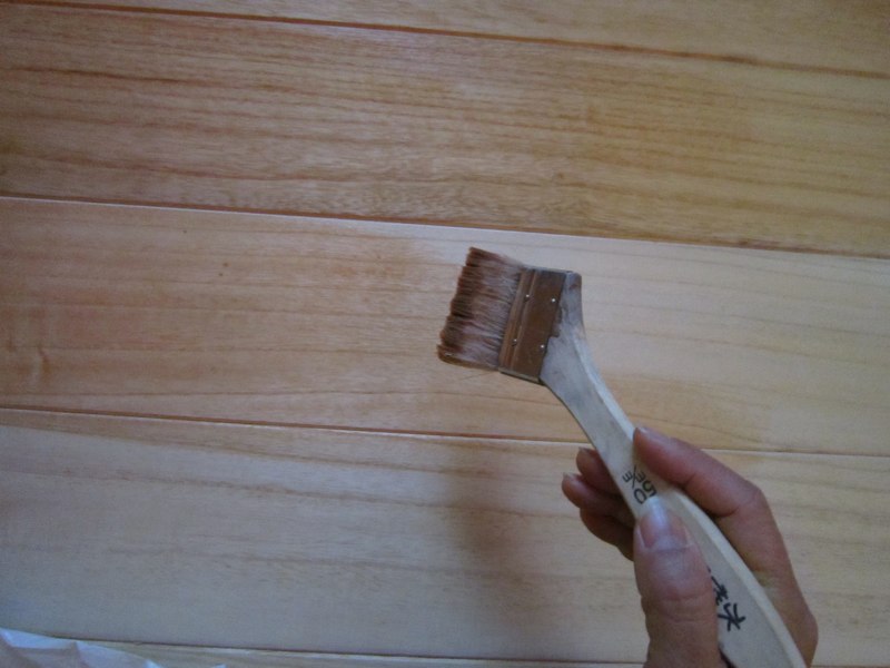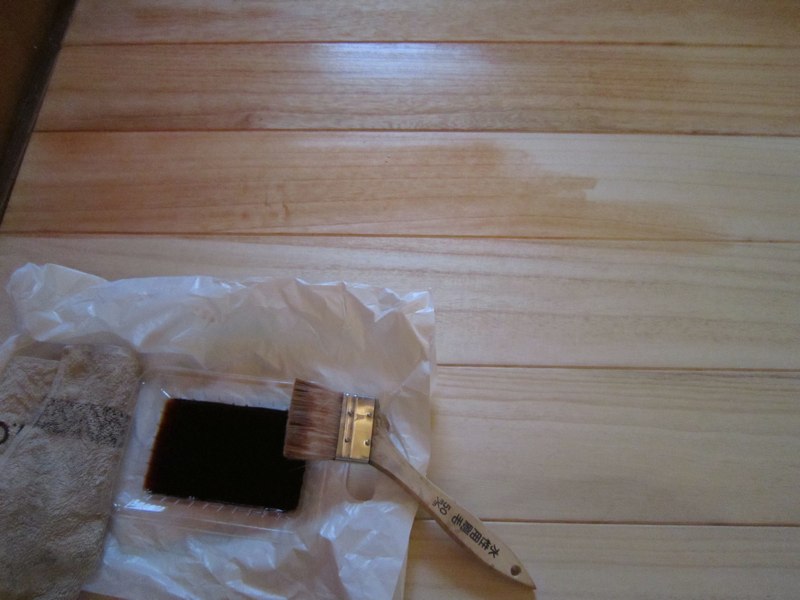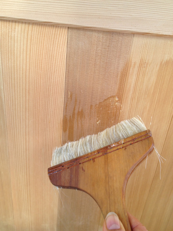 塗装します。毎回お馴染みの水性ステインと蜜蝋ワックス。