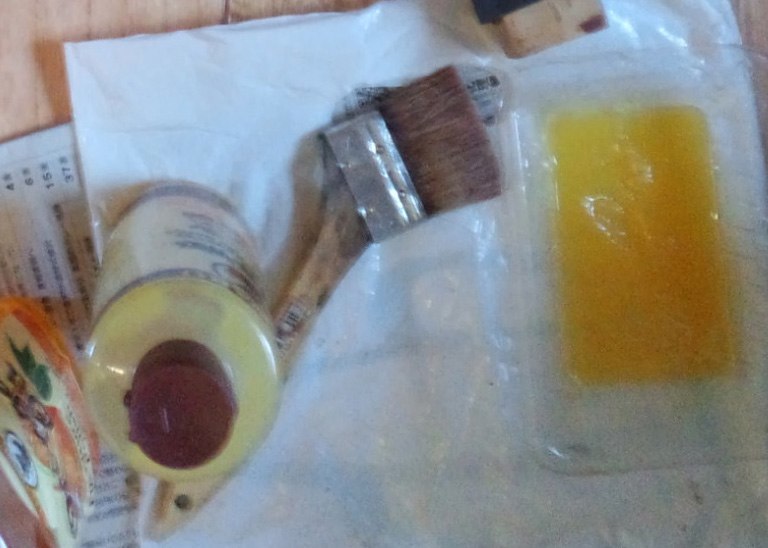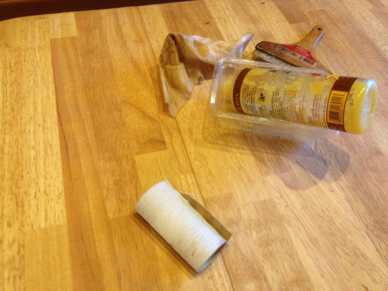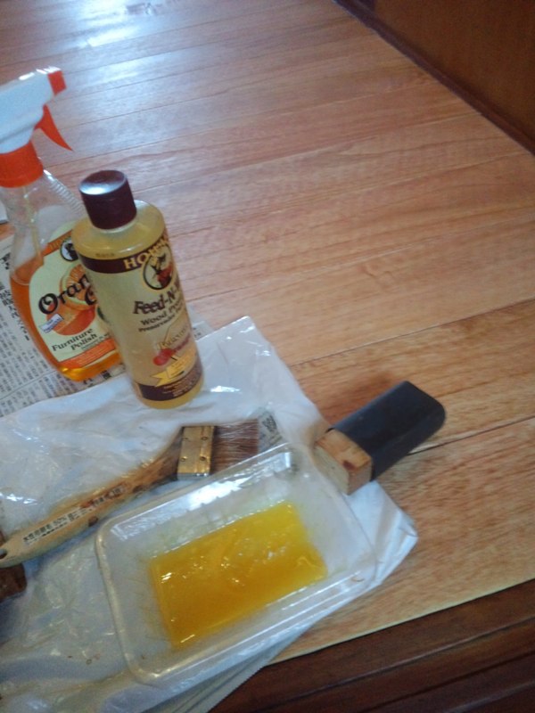 ![乾いたらオレンジオイルとビーズワックスを混ぜたものを塗って]()