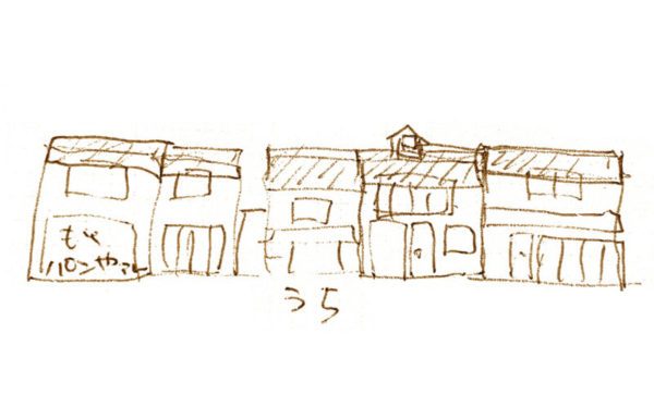 玄関は縁側風。当初の予定と変更のため、急きょスケッチを描いてお伝えすると、