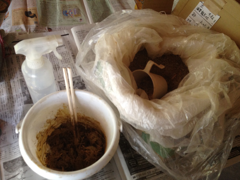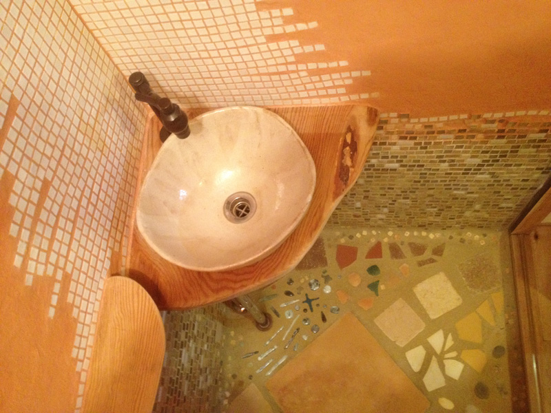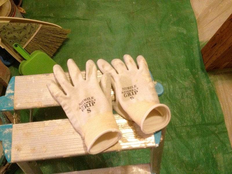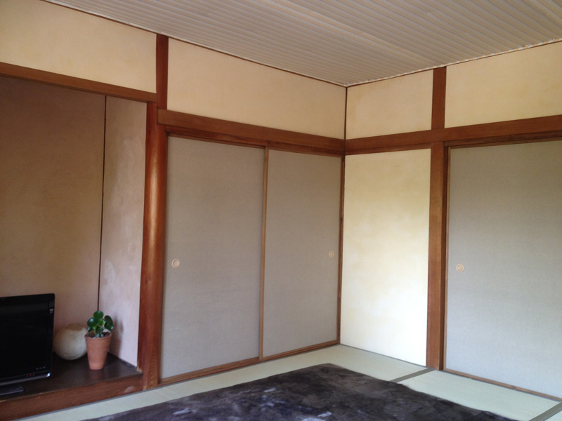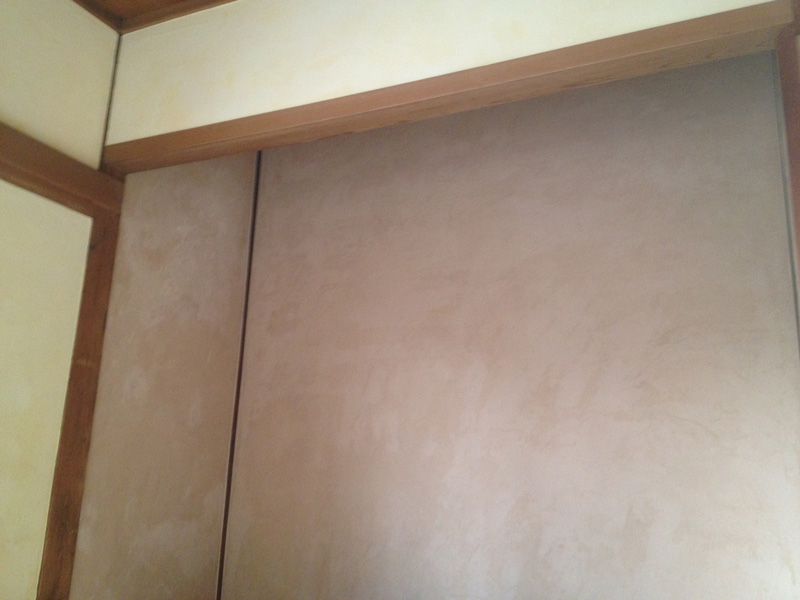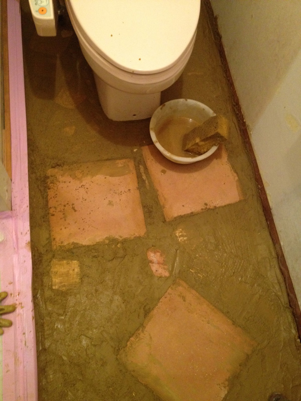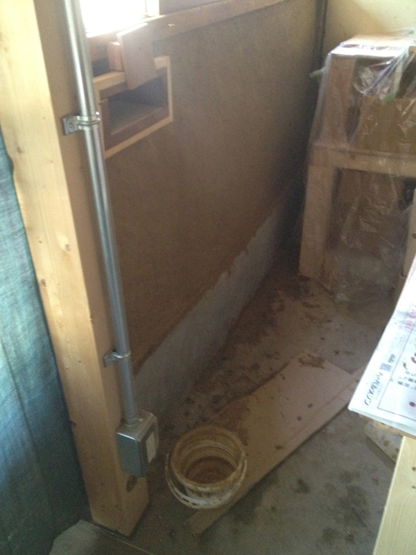 2Fで使った珪藻土が少しだけ余ったので土間床に塗ってみたところ。(あとでだんだん剥がれてきてこれは失敗とわかる)
