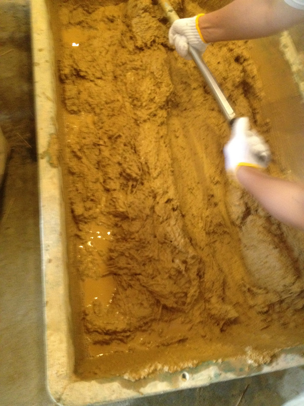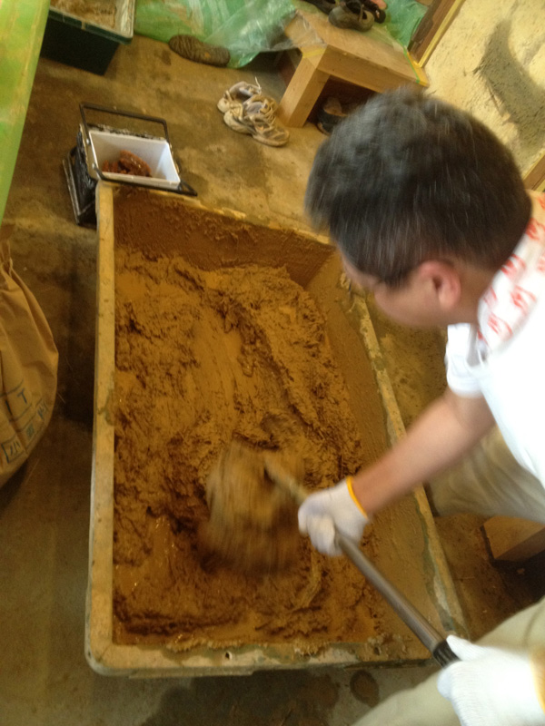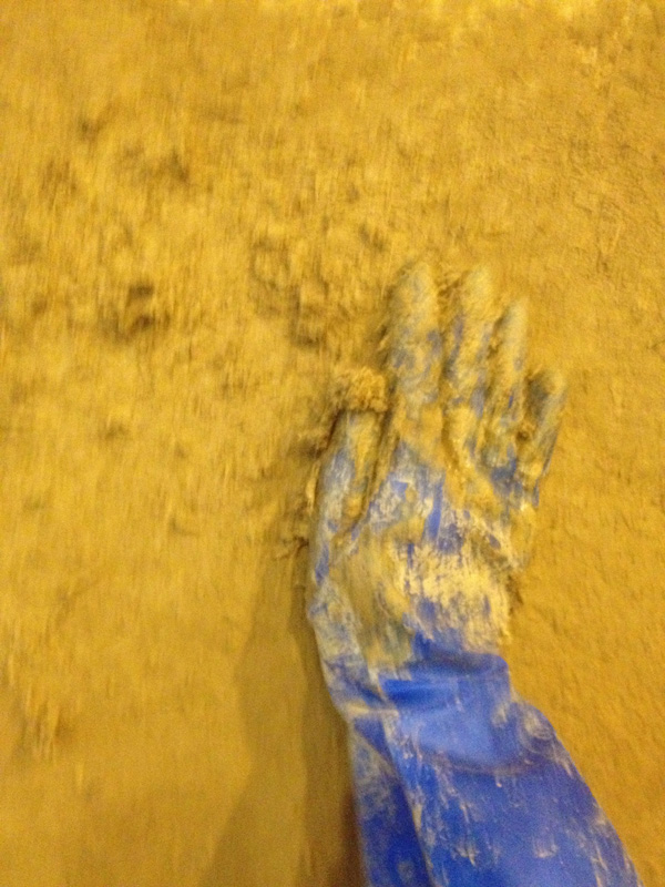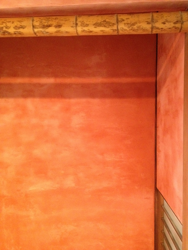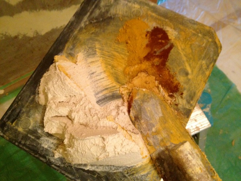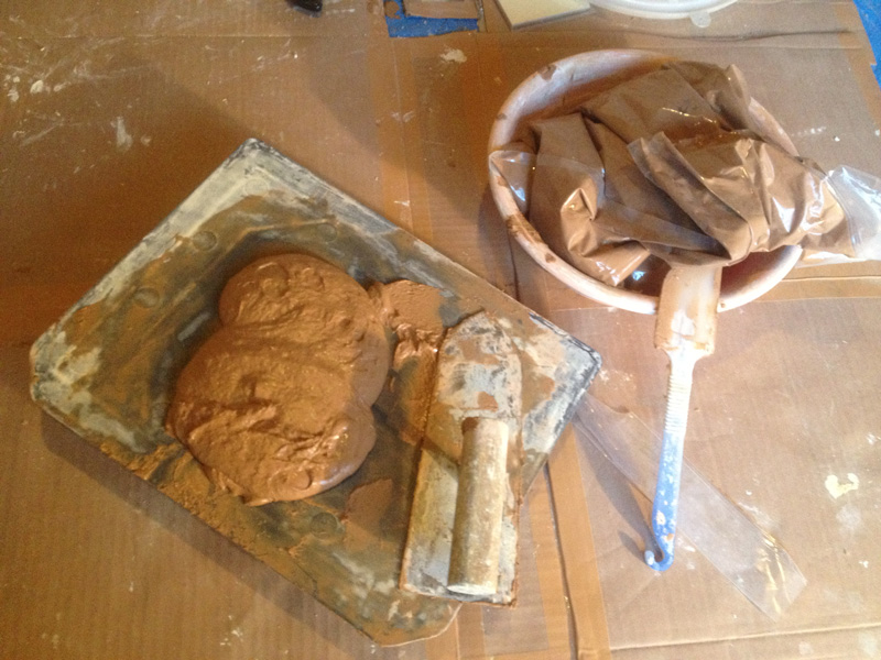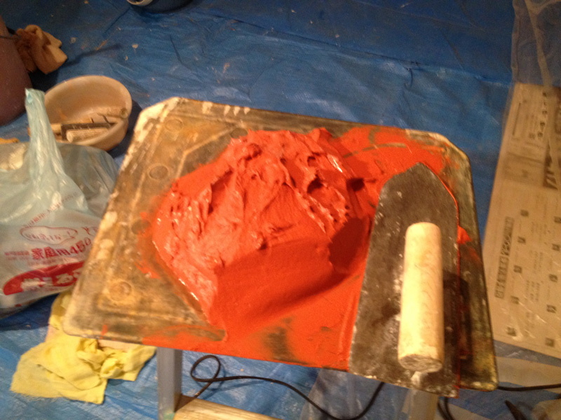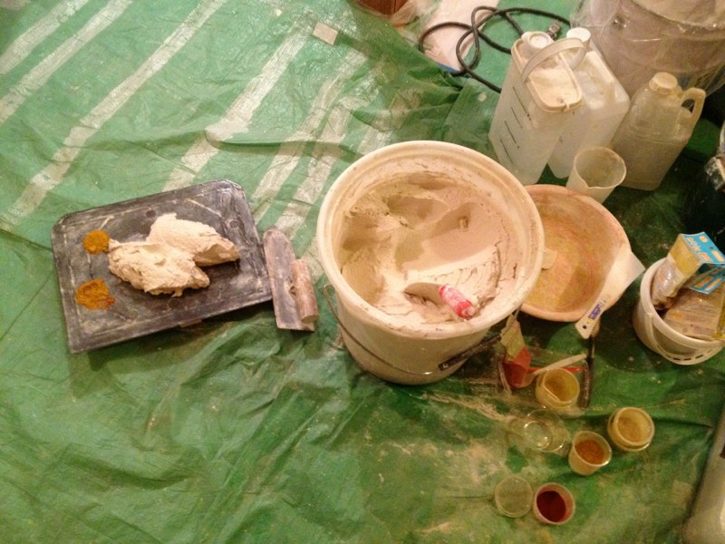 漆喰にときどき色粉を混ぜながら塗る。さあ、どうなるか…