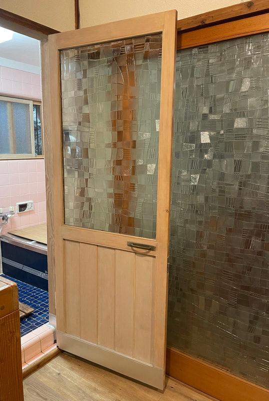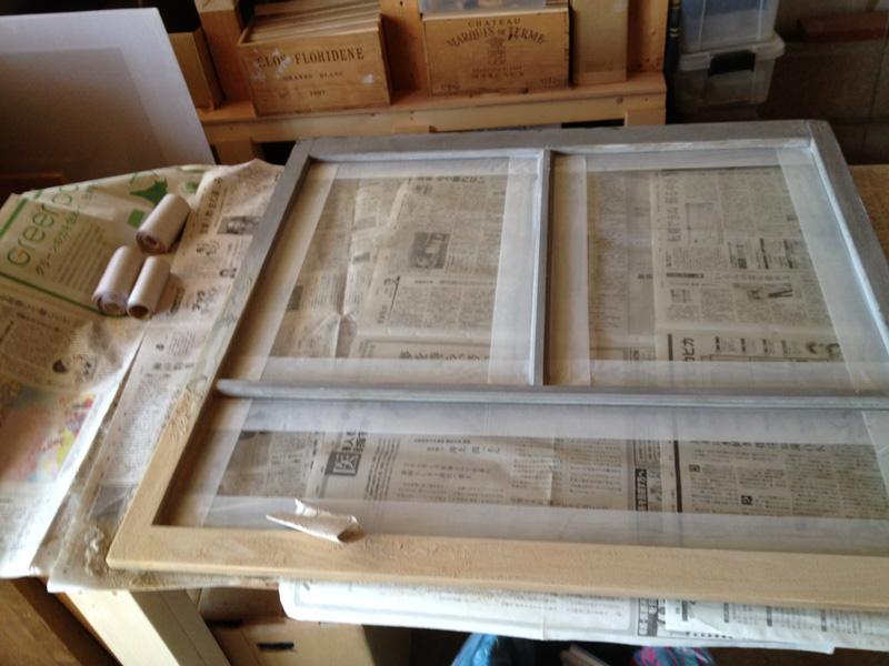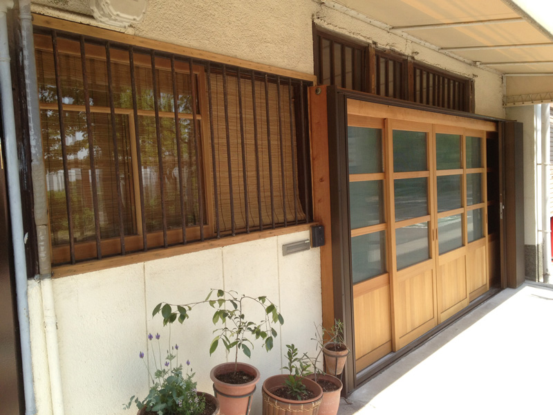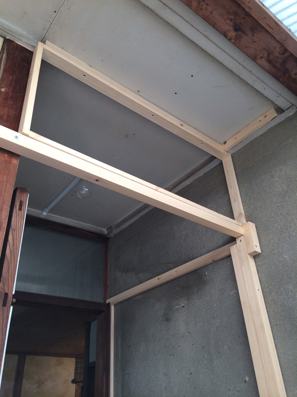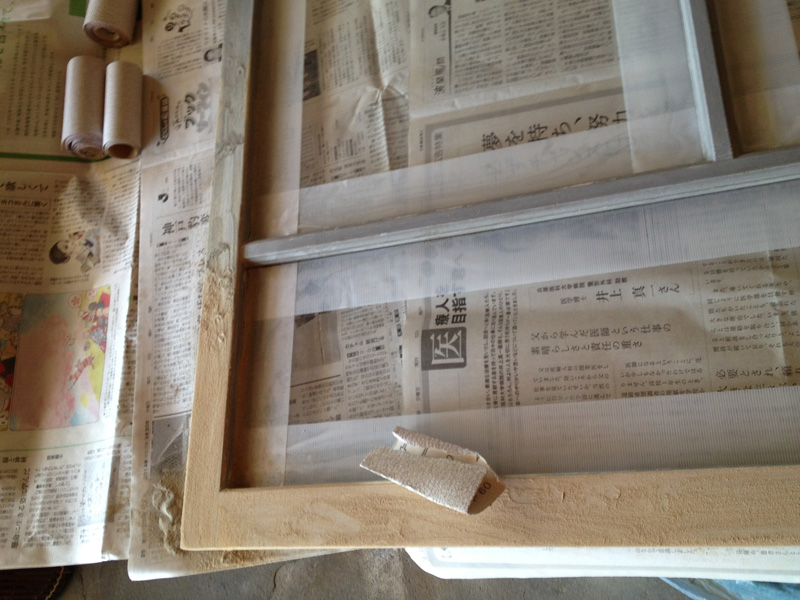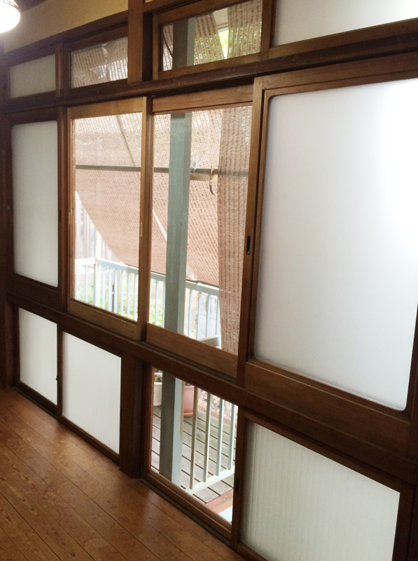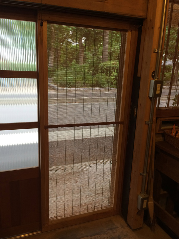 ![できました。真夏なので、ガラス戸をはめなくてもいいくらい気持ちいいです。冬になったらこの網戸を利用しての二重窓作戦もあるのだけれど、それはまた冬の作業。]()