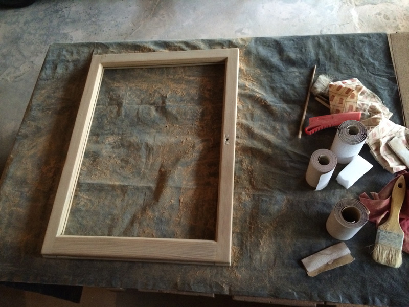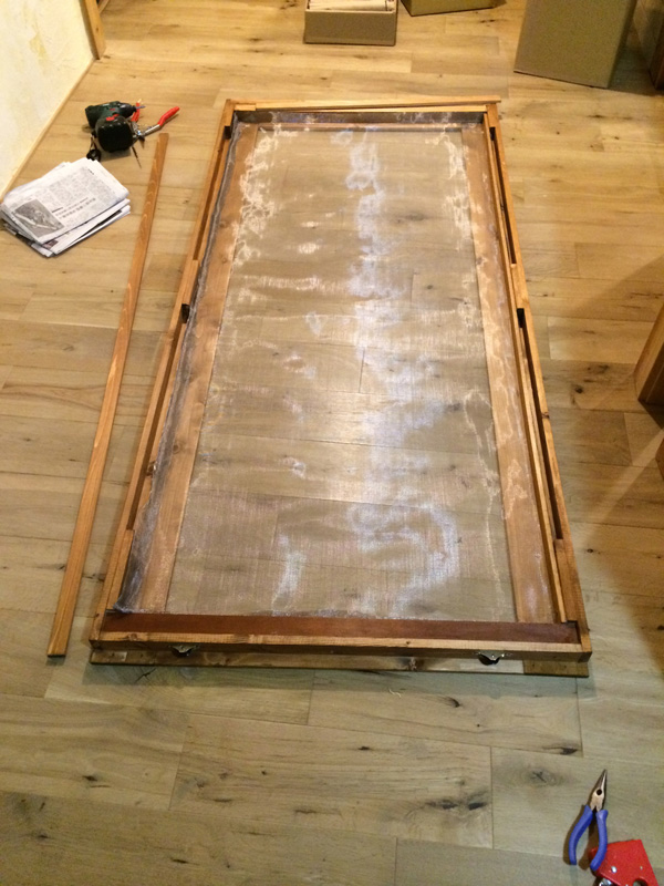 薄い板材を3層に重ねて、両面テープと工作用の極細ビスで留めて木枠を作ります。素人の私でもできる方法。