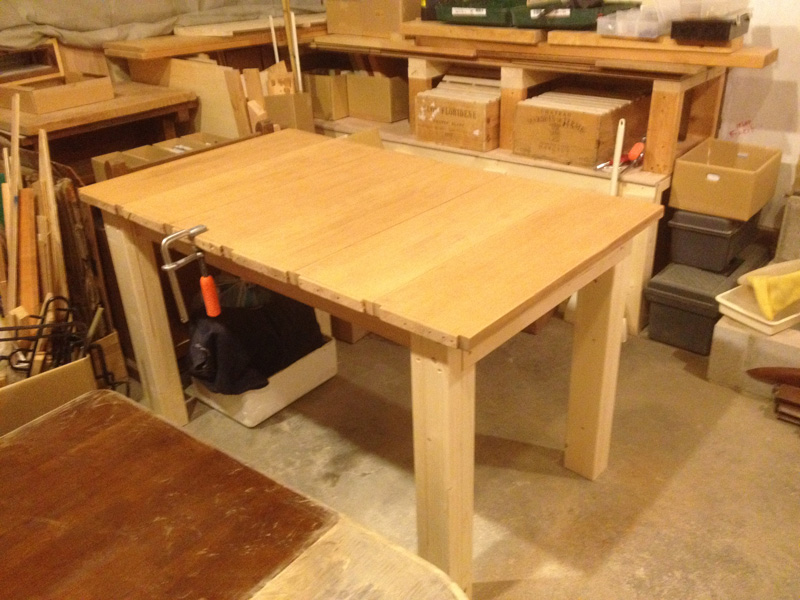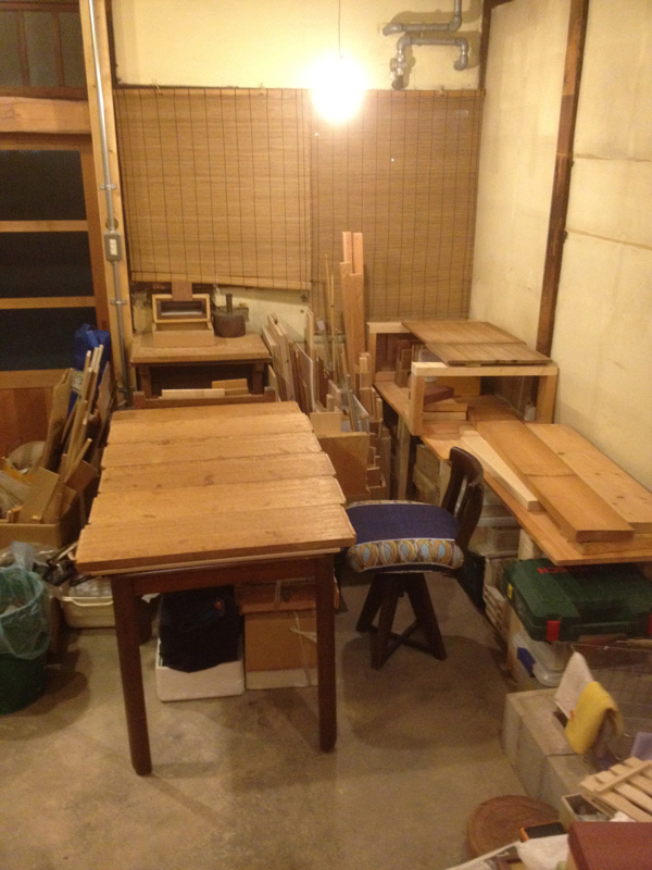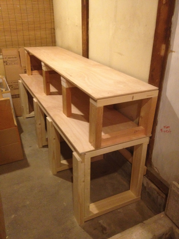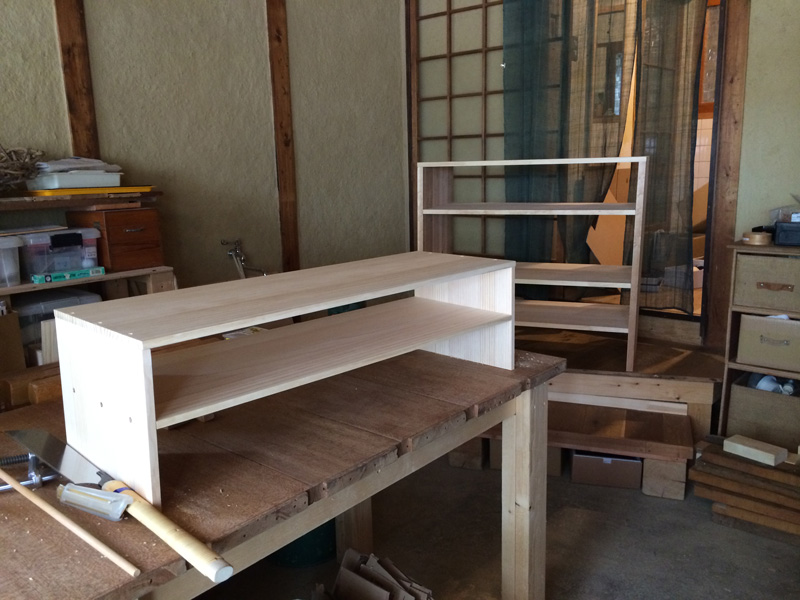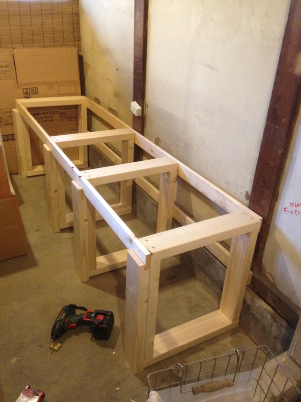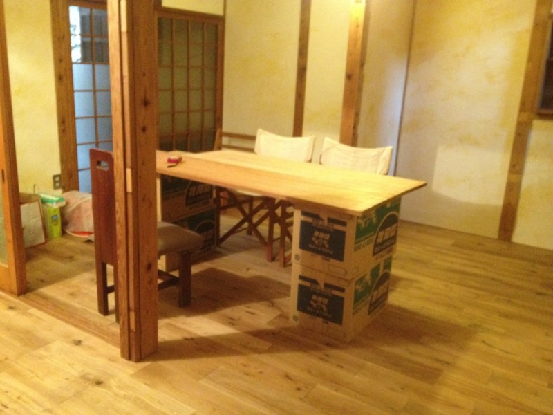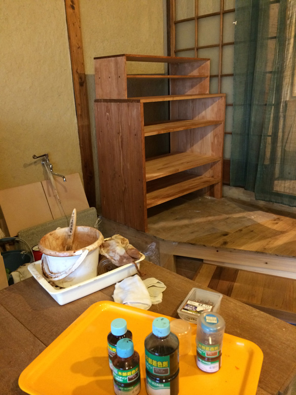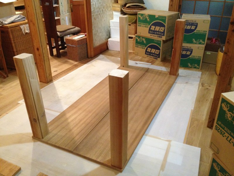![天板は、2階奥についてた昔ながらの厚い棚板を2枚合わせて。]()