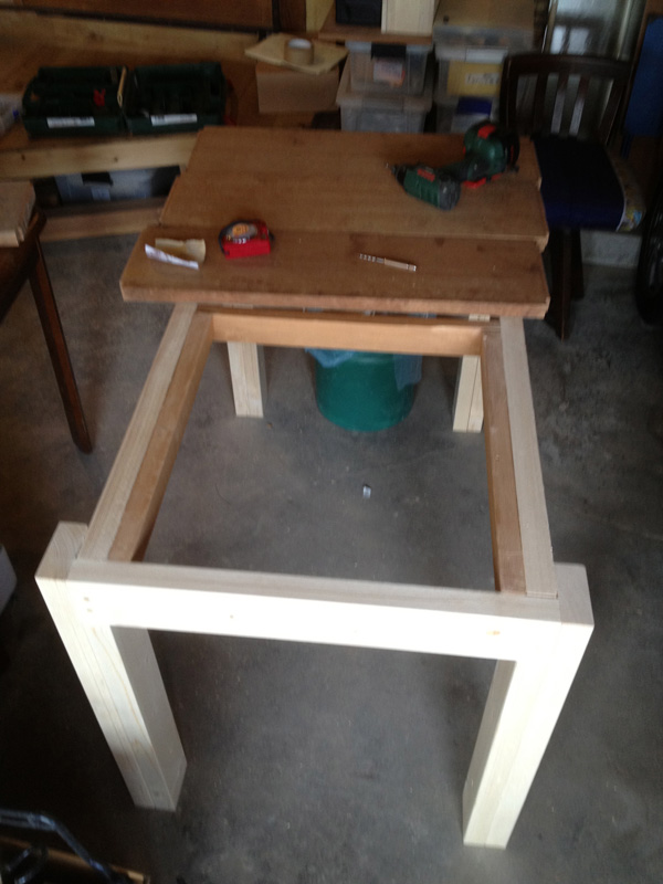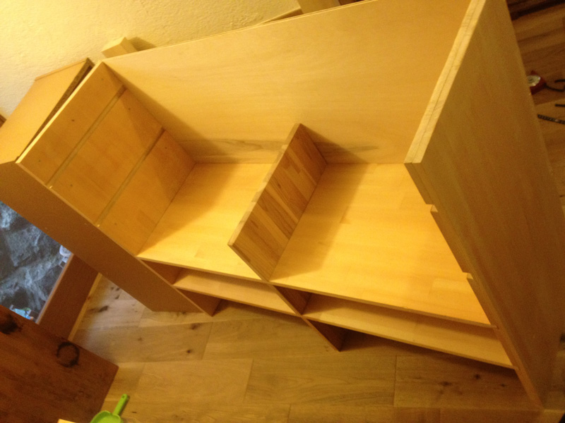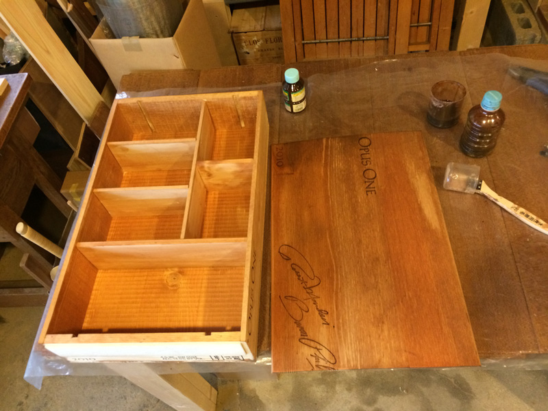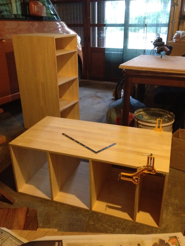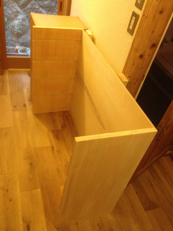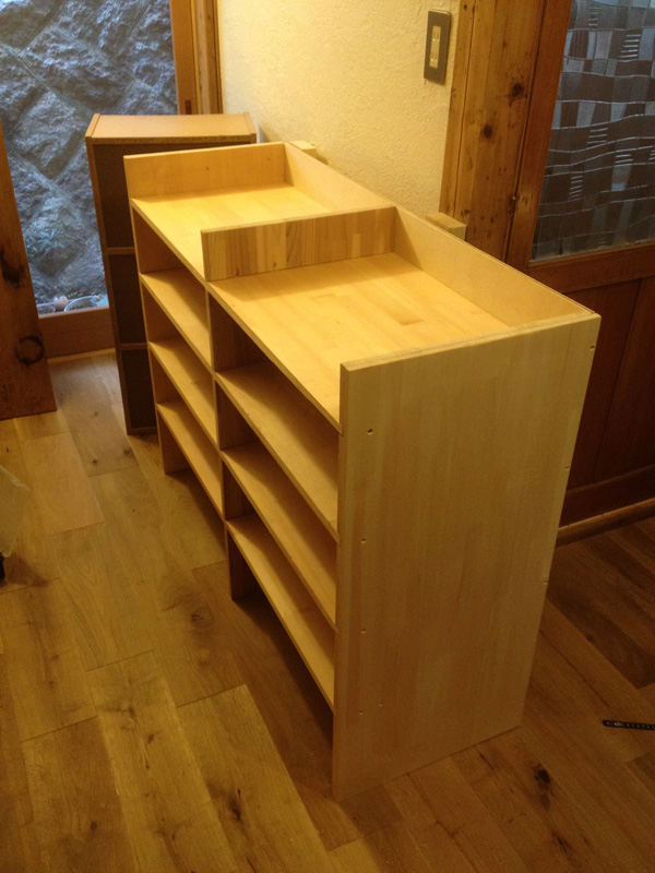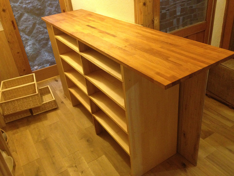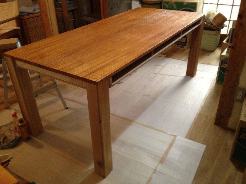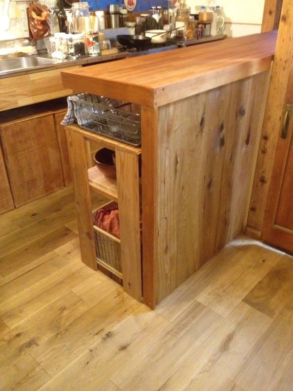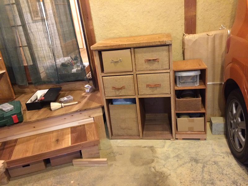 オイルを塗って完成。横に置いてるカゴを引出しにするつもり