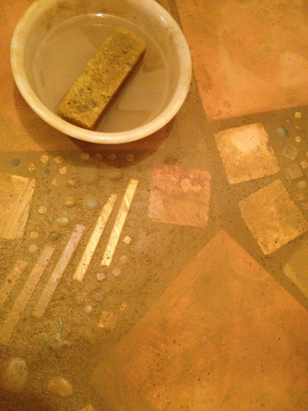 スポンジで目地を拭き取り、タイルを洗い出していきます