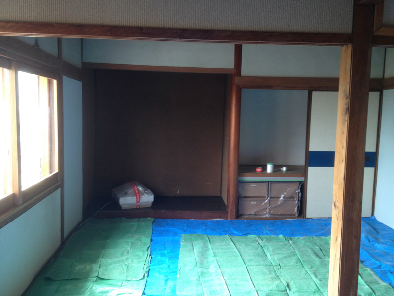 ![リビングの方はもう少し広いし、下地もかなり補修必要]()