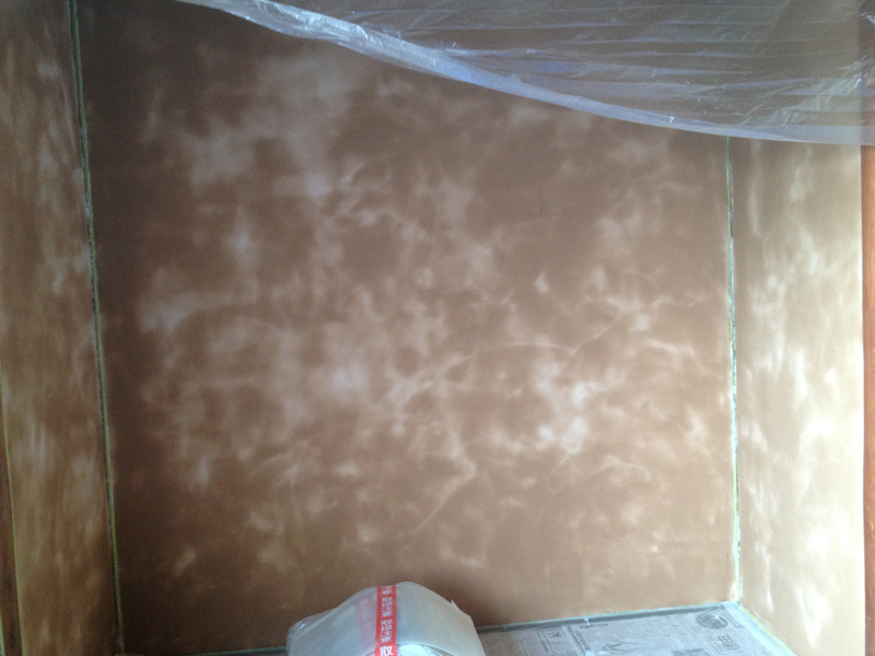 仕上げはムラ塗りにしたいので、前もってサンプルを作っているところ