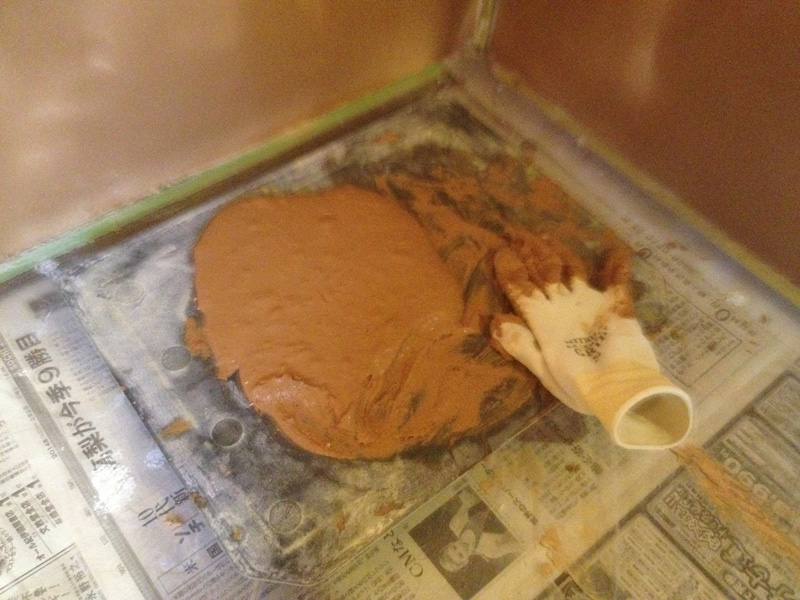 ![下地補修。自分ちだからかなり適当。これも実験ということで。]()