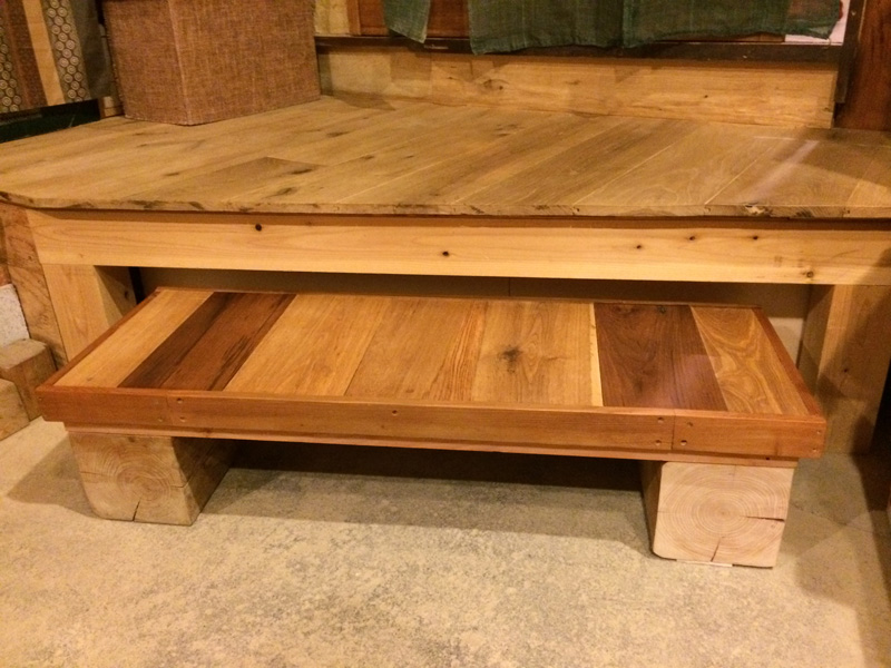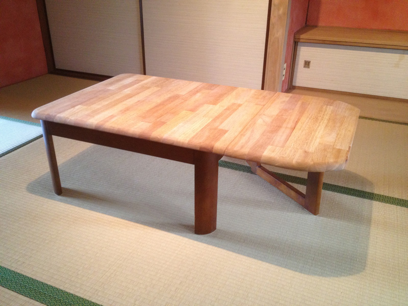 今まで使っていた座卓は天板をトイレ手洗い棚の材料にするため。