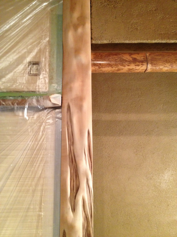 木材は軽いファルカタ、ポアステインで着色、あとでオイルも塗ります。