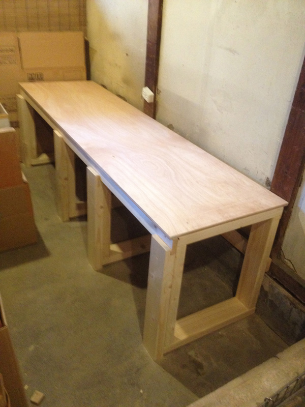 ![次は大机が必要なのですが、ダンボール箱の脚でしばらく代用中…]()