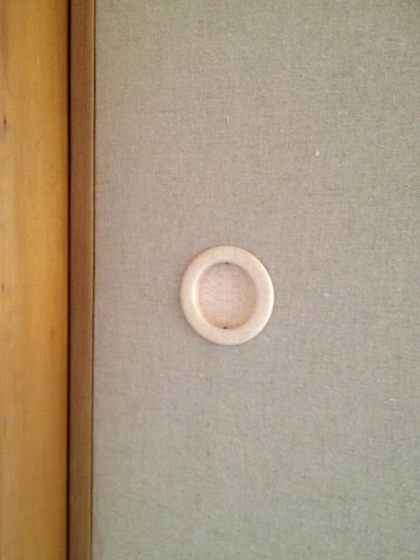 出来上がり。2Fの物干しに面した下窓。取り外ししやすいように取手もつけました。