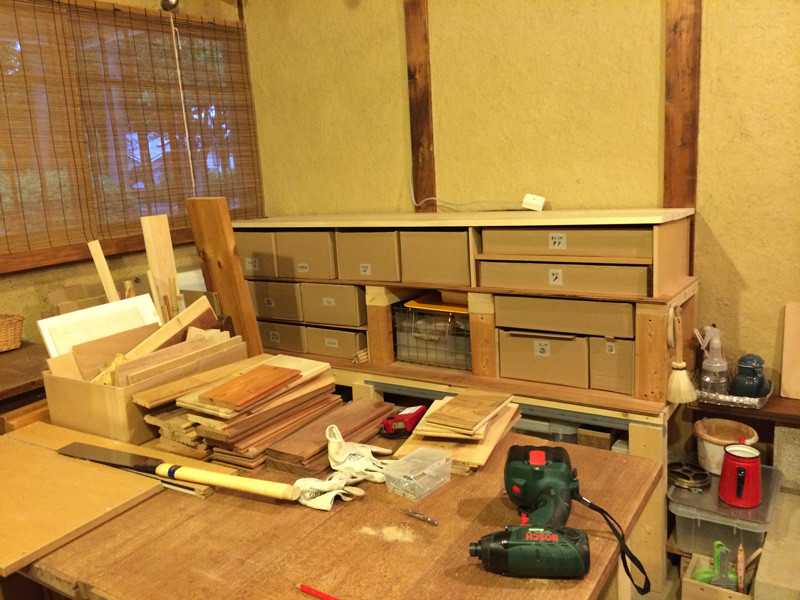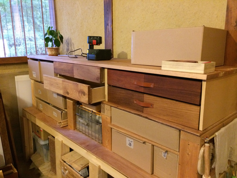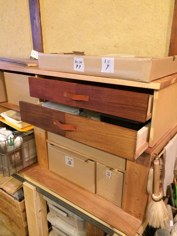 ![しばらく中断していた土間アトリエの引出しづくりを再開。]()