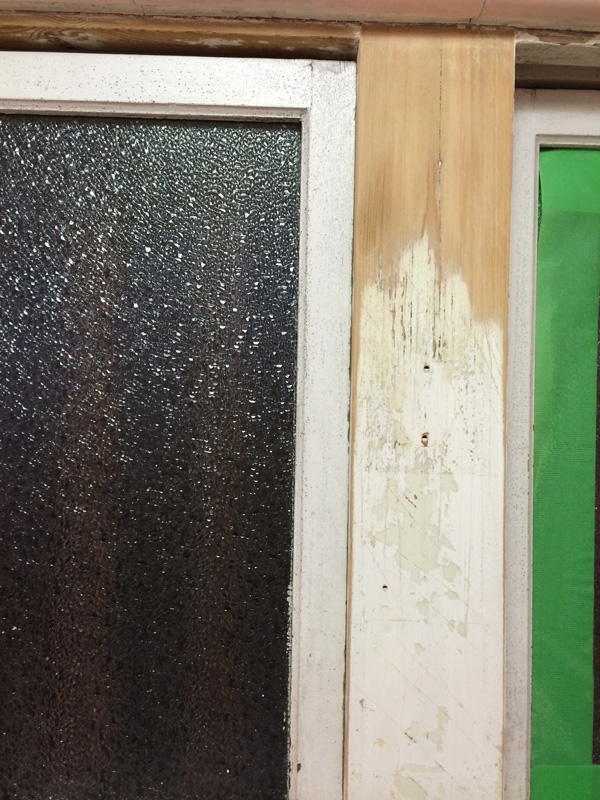 ![引戸の溝の加工はできないので足し算方式でつくります。まわりの木材と馴染むように塗装もして。]()
