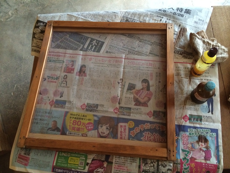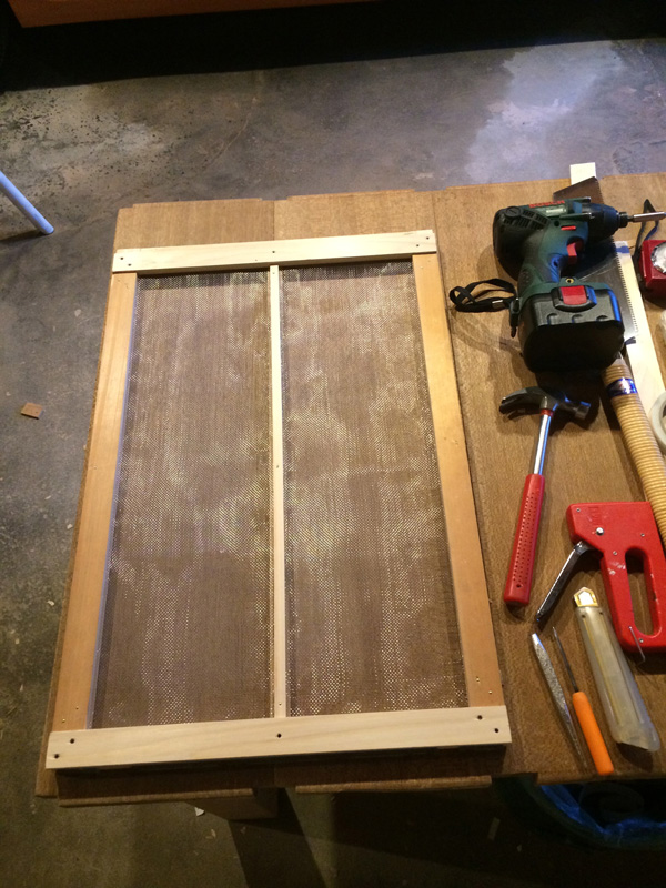 網はステンレス金網です。ピンと張るように注意して。
