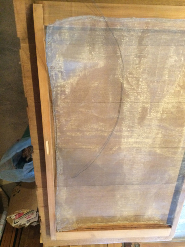 できました。真夏なので、ガラス戸をはめなくてもいいくらい気持ちいいです。冬になったらこの網戸を利用しての二重窓作戦もあるのだけれど、それはまた冬の作業。